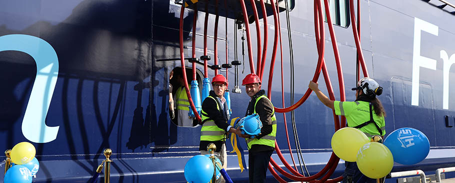Al menos el 45% de las escalas en el puerto de Estocolmo podrán conectarse a la red eléctrica del puerto. La electricidad suministrada es 100% sostenible, proveniente de fuentes renovables como eólica e hidráulica.