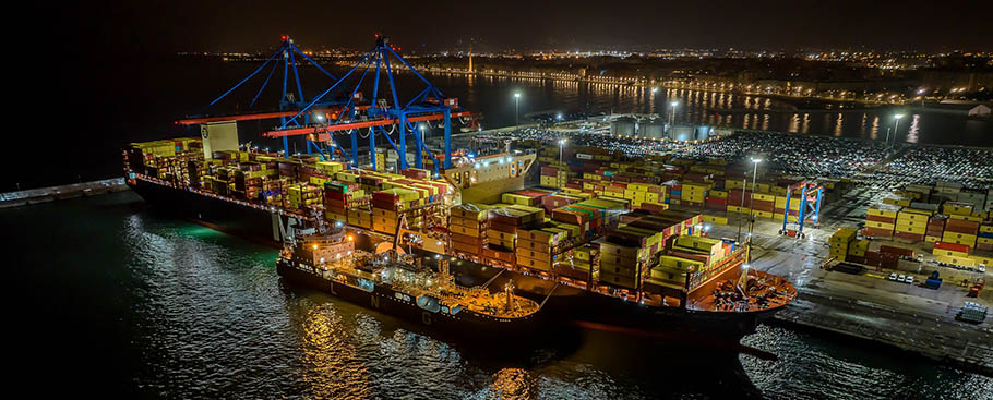 Estas imágenes, totalmente inéditas en un puerto español, reflejan un hito en España que se realiza, por primera vez, una operación de bunkering ship-to-ship y de forma paralela a la descarga de mercancías.