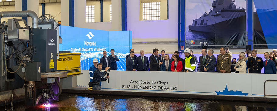 El astillero de Navantia en Ferrol (A Coruña) acogió el pasado viernes 25 de abril, una doble ceremonia en la que se ha iniciado la construcción de la fragata F113, el tercer buque de la serie F110, y se ha puesto en la grada la quilla de la F112.