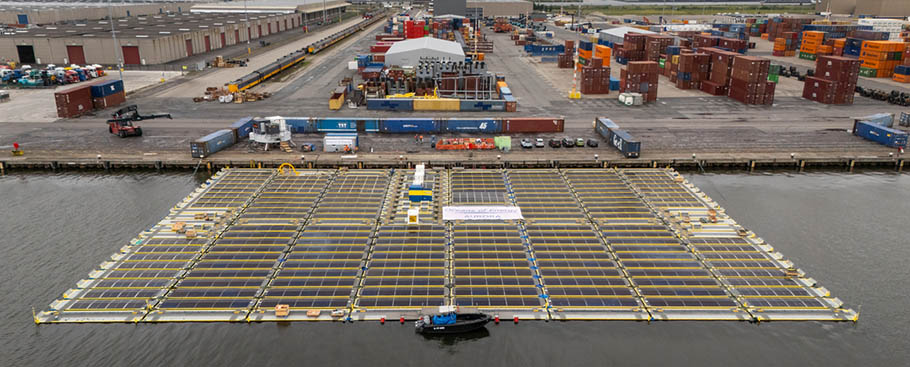 El pasado 26 de junio, se daba por completada la fase de montaje del primer parque solar flotante del mundo que se integrará en un parque eólico offshore. Dicho montaje se ha realizado en puerto de Ámsterdam en tan sólo 3 días.